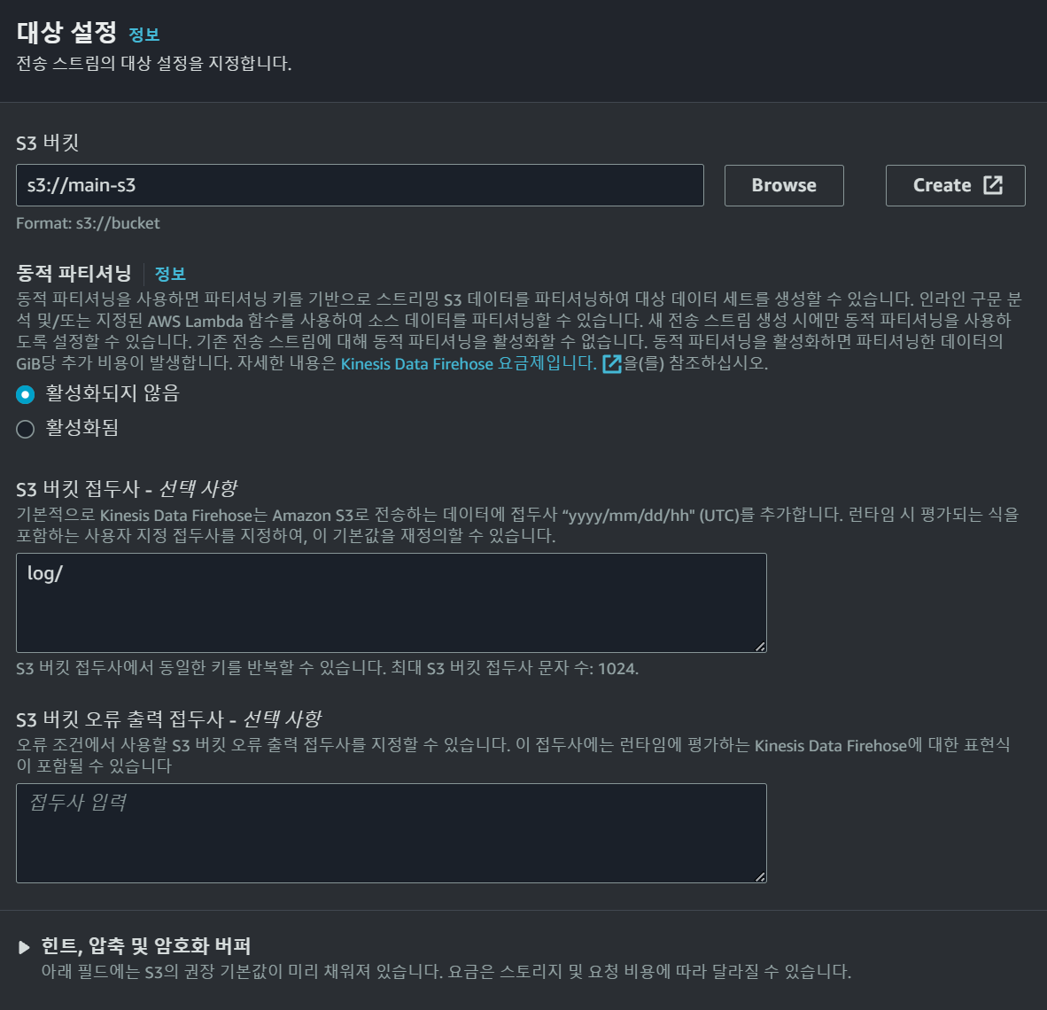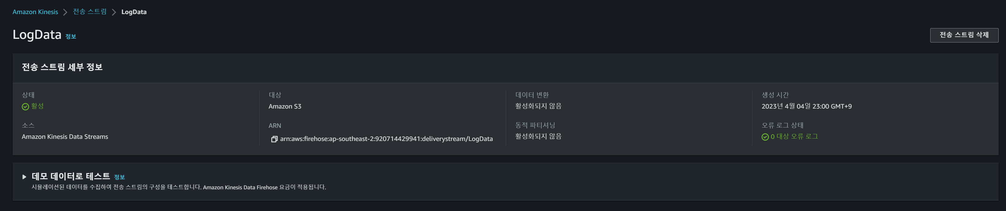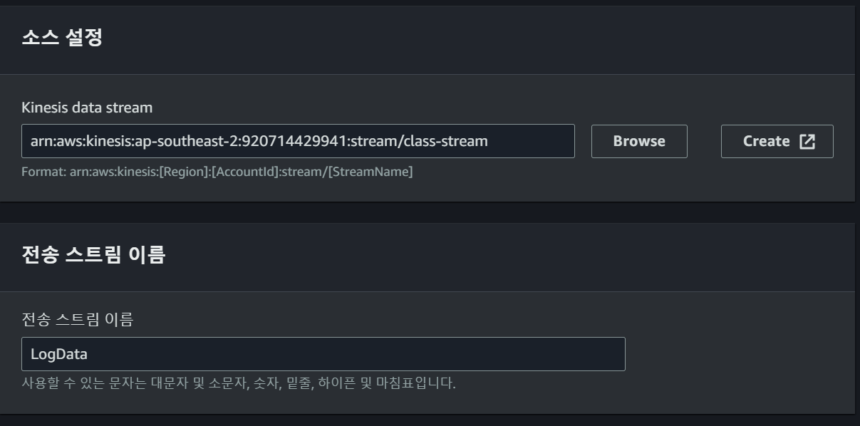 - 소스 설정 : Datastream에 ARN을 삽입해준다.